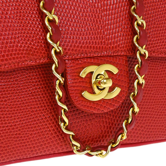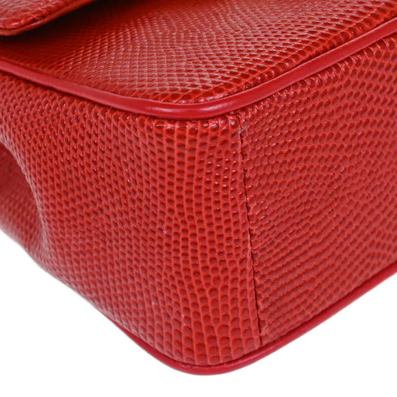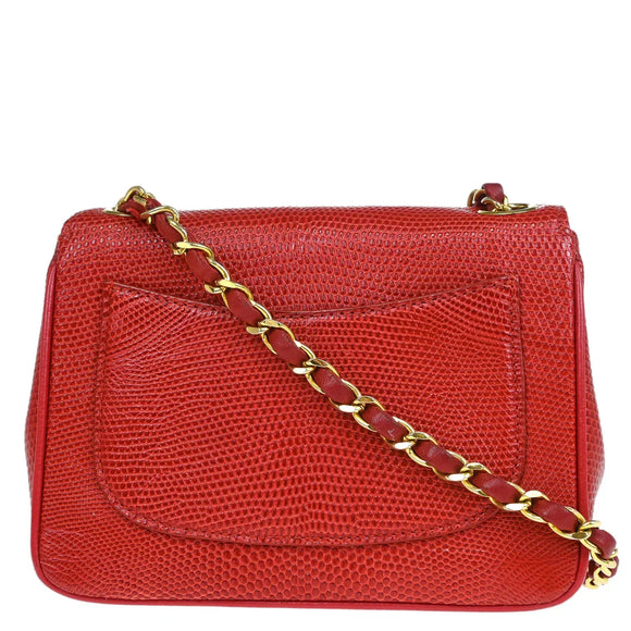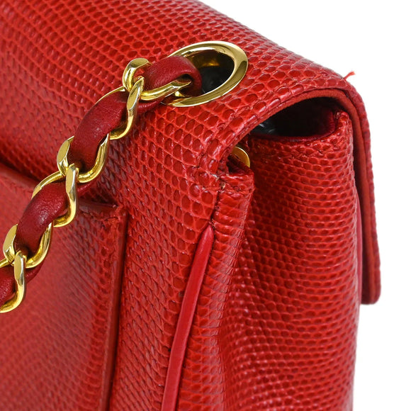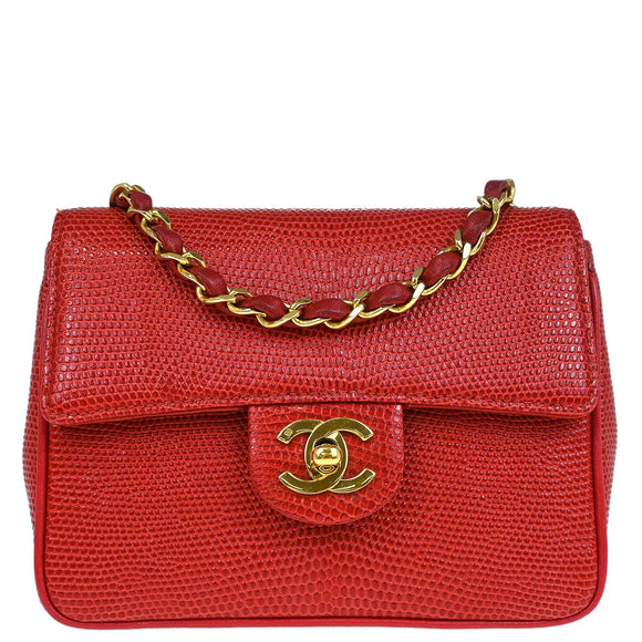 Chanel * Red Lizard Mini Classic Square Flap Shoulder Bag