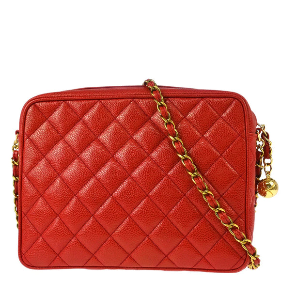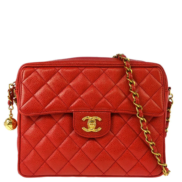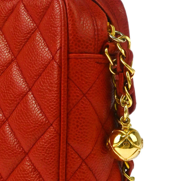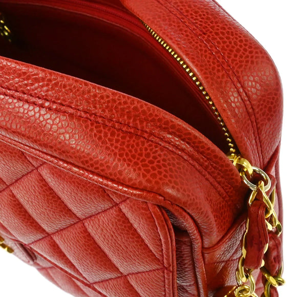 Chanel 1991-1994 Red Caviar Camera Bag Small