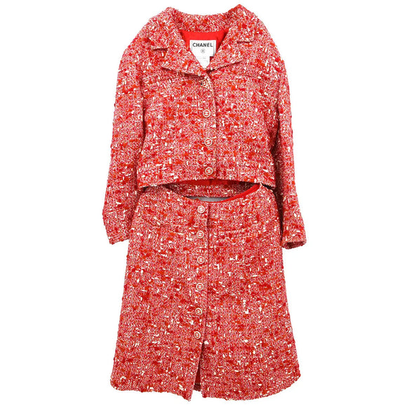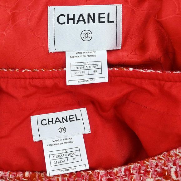Chanel 2001 Setup Suit Jacket Skirt Red #40