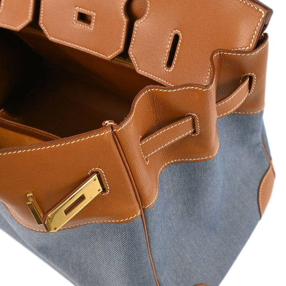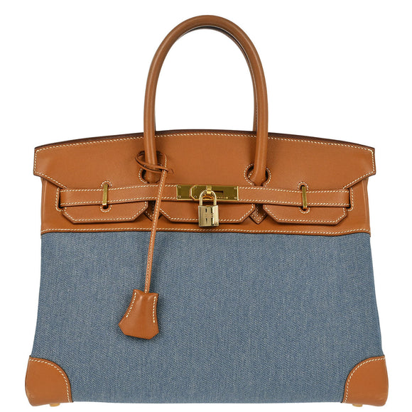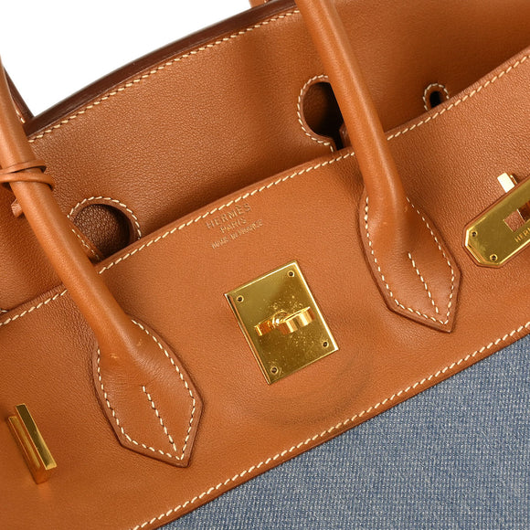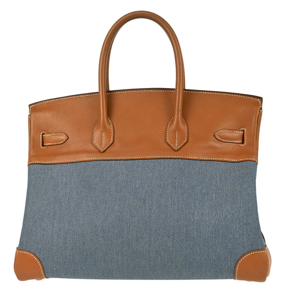 Hermes * 1998 Indigo Toile Jean Vache Birkin 35 Handbag