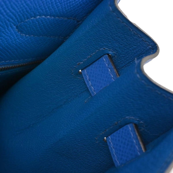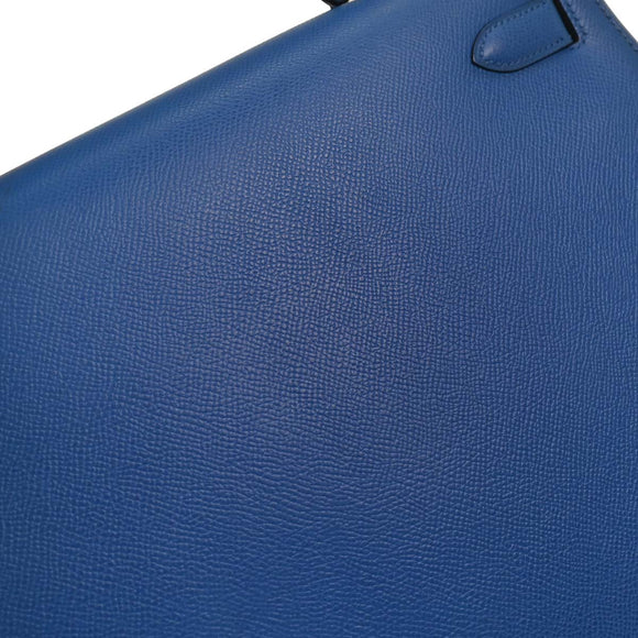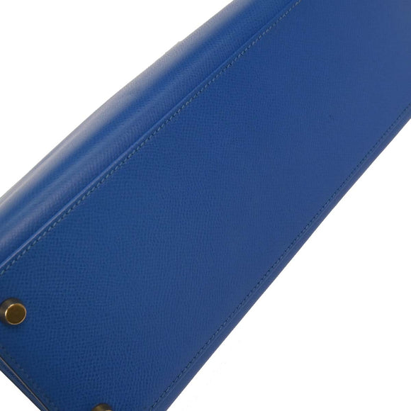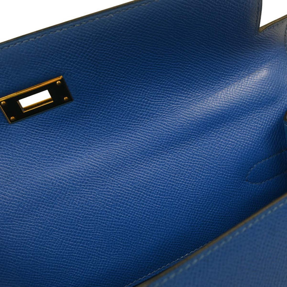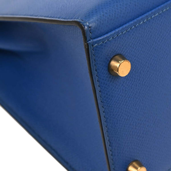 Hermes 1996 Blue France Courchevel Kelly 32 Sellier Handbag
