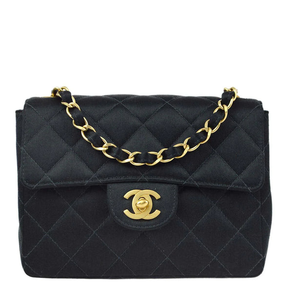 Chanel 2000-2001 Black Satin Mini Classic Square Flap Shoulder Bag 17