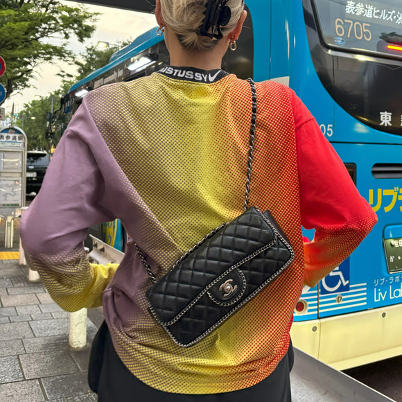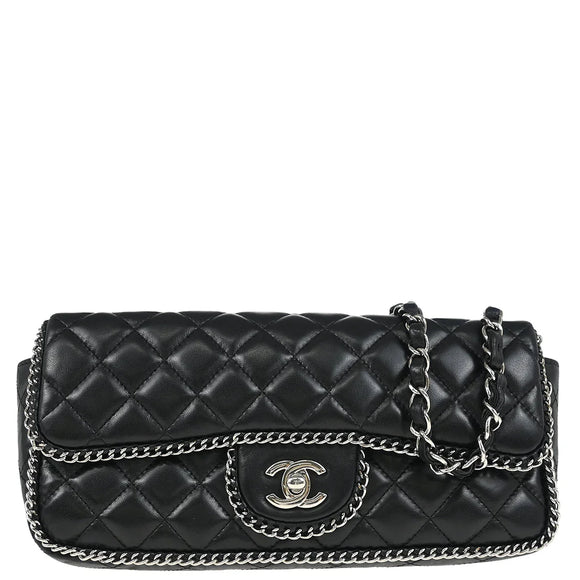 Chanel 2006-2008 Black Lambskin East West Around Chain Shoulder Bag