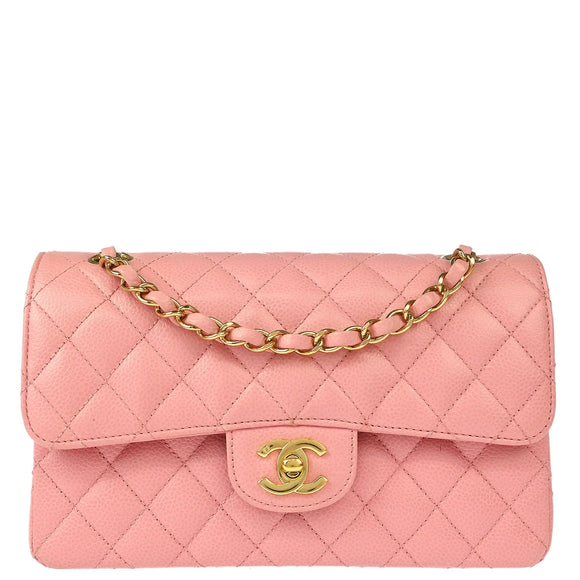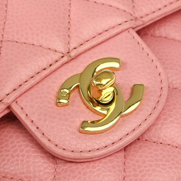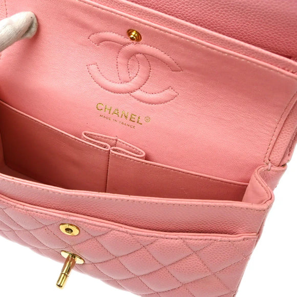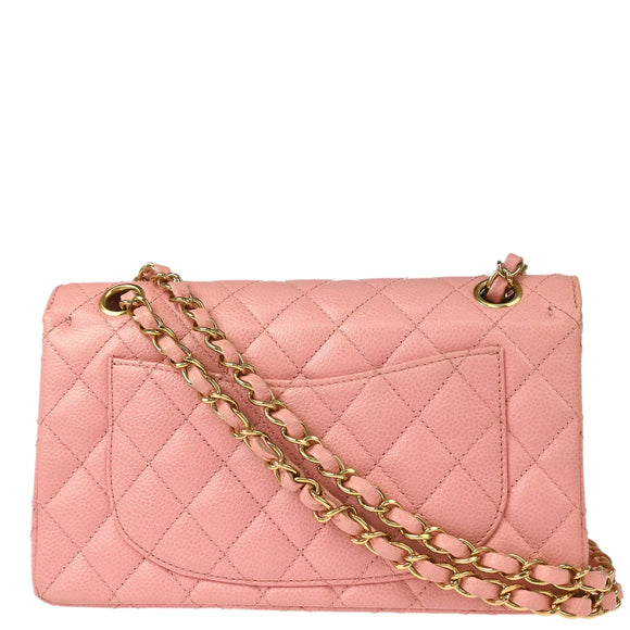 Chanel 2005-2006 Pink Caviar Small Classic Double Flap Shoulder Bag