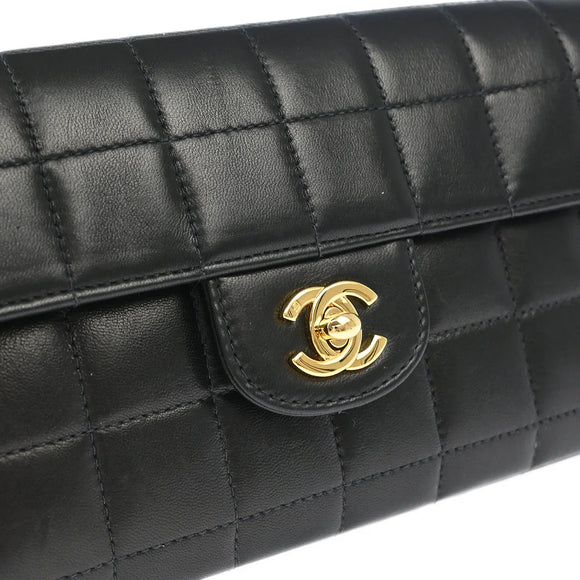 Chanel 2003-2004 Black Lambskin East West Choco Bar Shoulder Bag