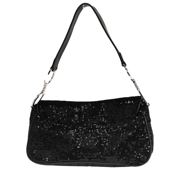 Christian Dior Black Velvet Sequins Saddle Handbag