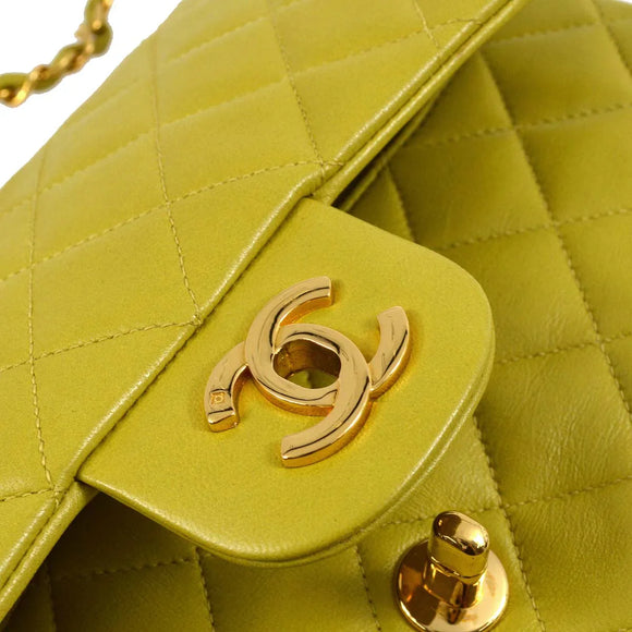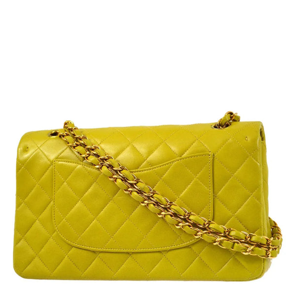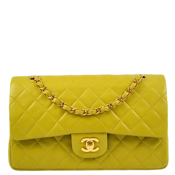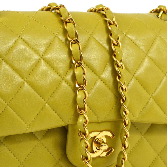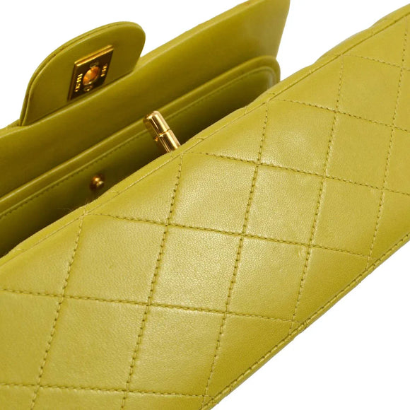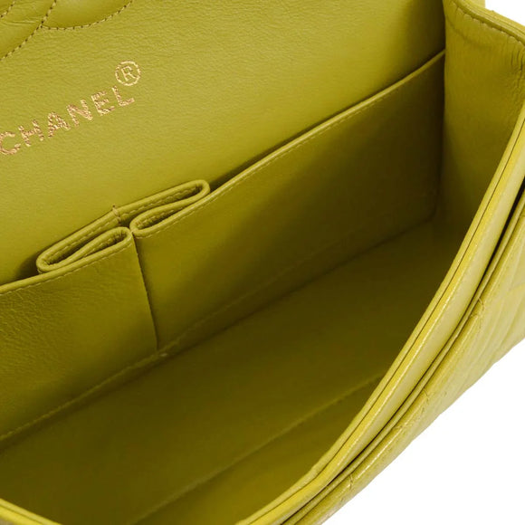 Chanel * 1997-1999 Green Lambskin Medium Classic Double Flap Shoulder Bag
