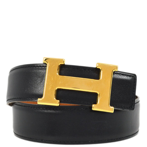 Hermes 1995 Black Box Calf Constance Reversible Belt #70 Small Good