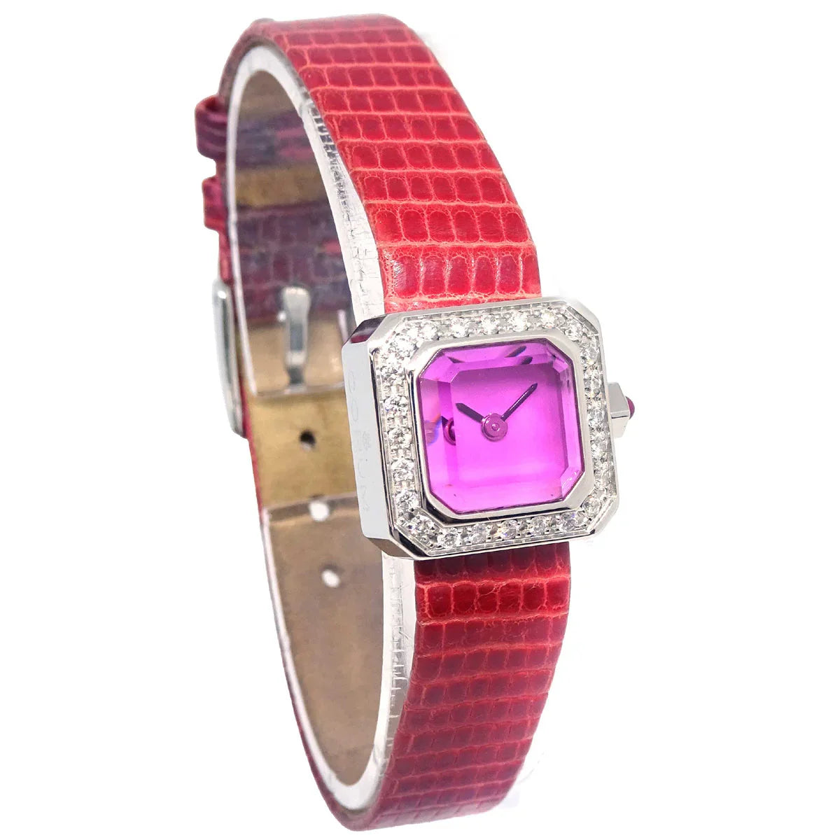 Corum * Sugar Cube Ref.137.424.47 Quartz Watch SS Diamond Red Lizard