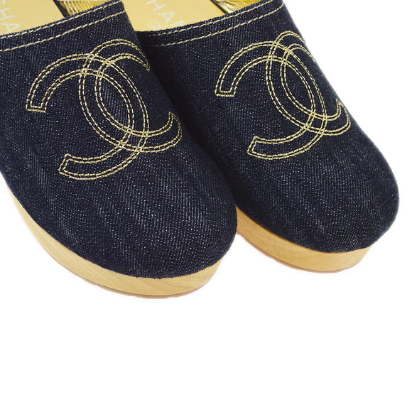 Chanel Navy Denim Sabot Shoes Sandals #35