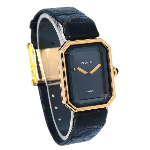 Chanel * Premiere Quartz Watch Black 18KYG Crocodile