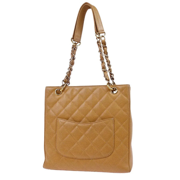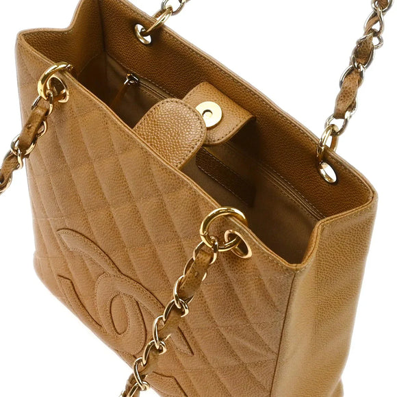 Chanel 2003-2004 Beige Caviar Petite Shopping Tote PST Chain Handbag