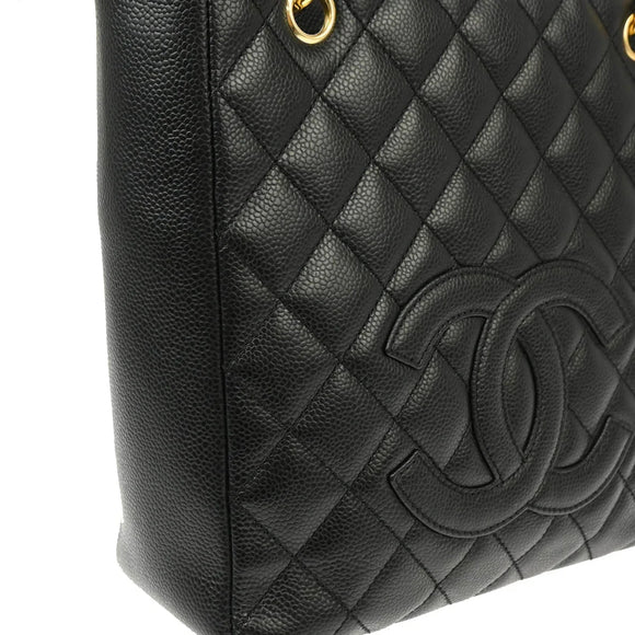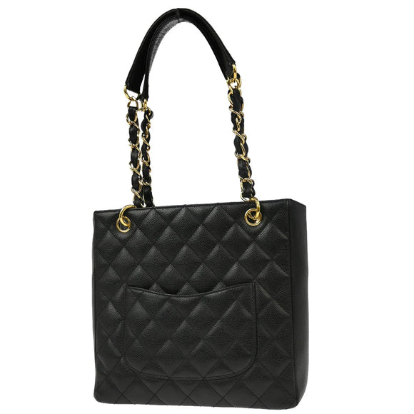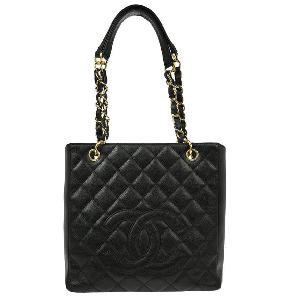 Chanel 2006-2008 Black Caviar Petite Shopping Tote PST Chain Handbag
