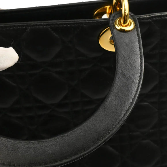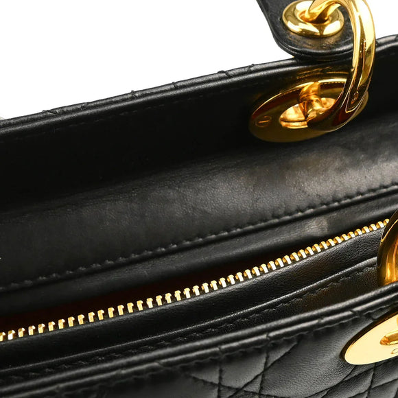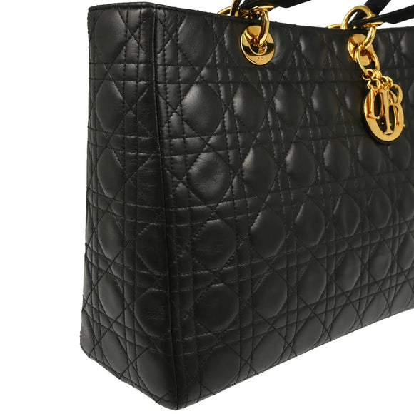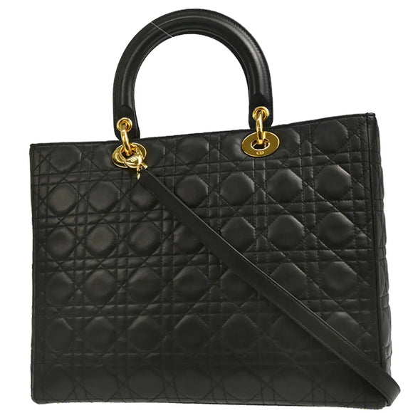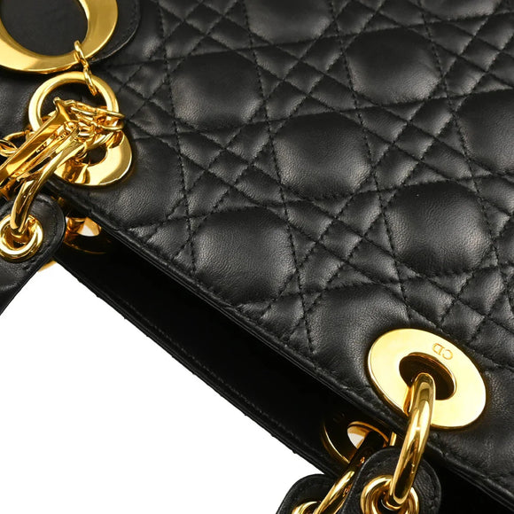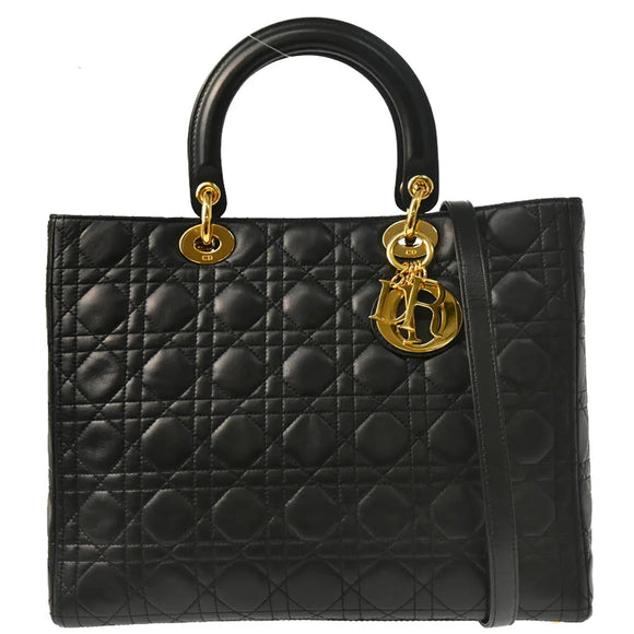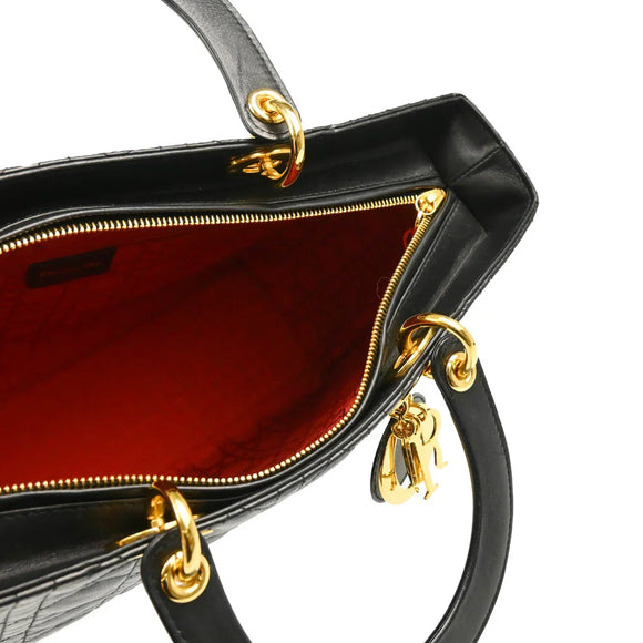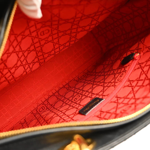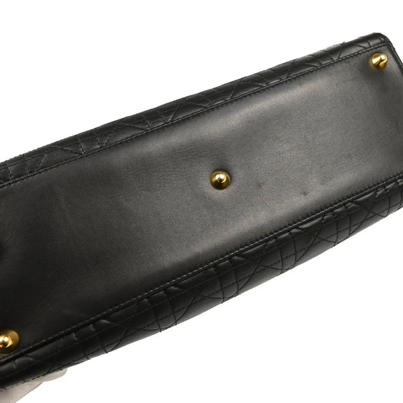 Christian Dior 2001 Black Lambskin Large Lady Dior Cannage 2way Shoulder Handbag