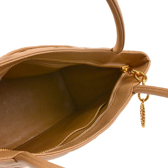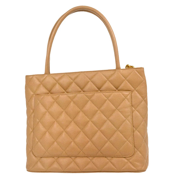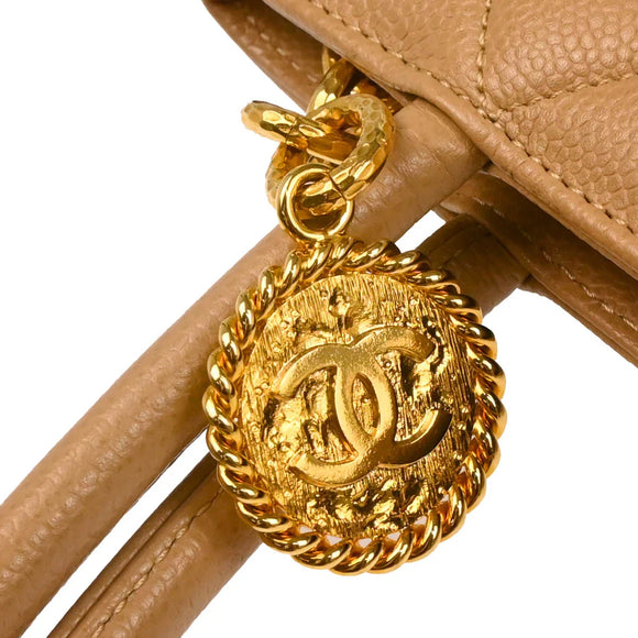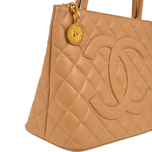 Chanel 2001-2003 Beige Caviar Medallion Tote Handbag