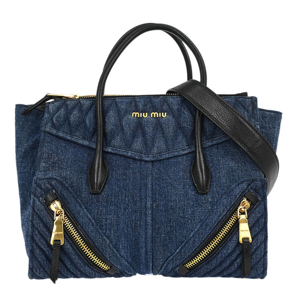 Miu Miu Blue Denim Biker 2way Shoulder Handbag