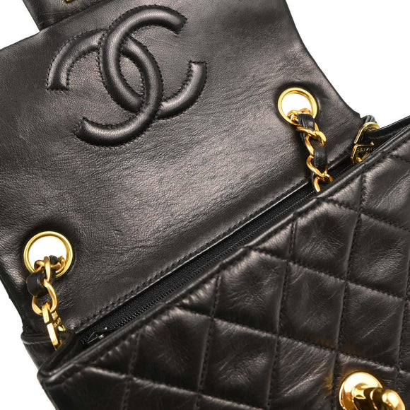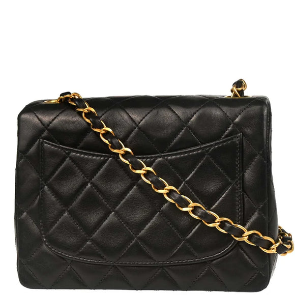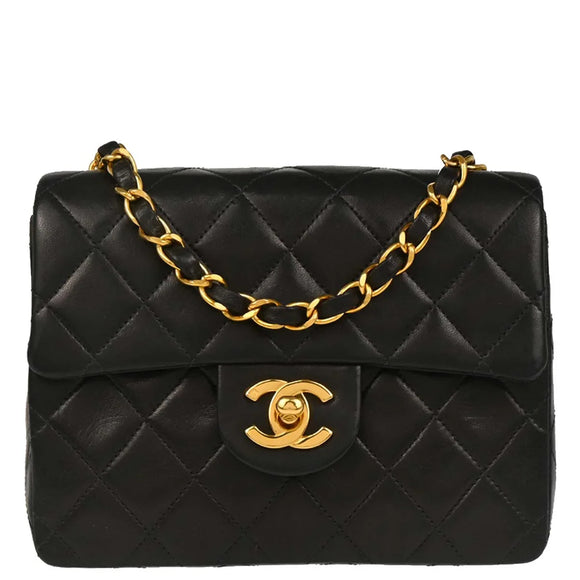 Chanel 1996-1997 Black Lambskin Mini Classic Square Flap Shoulder Bag
