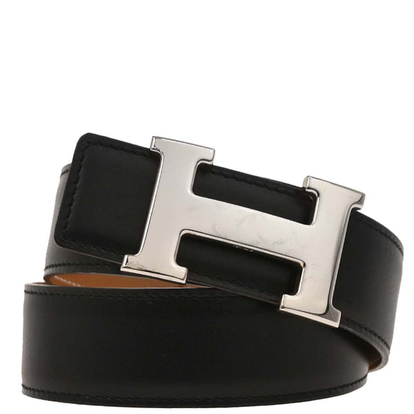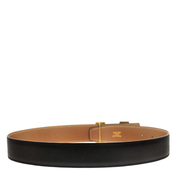 Hermes Black Gold Box Calf Constance Reversible Belt #65 Small Good