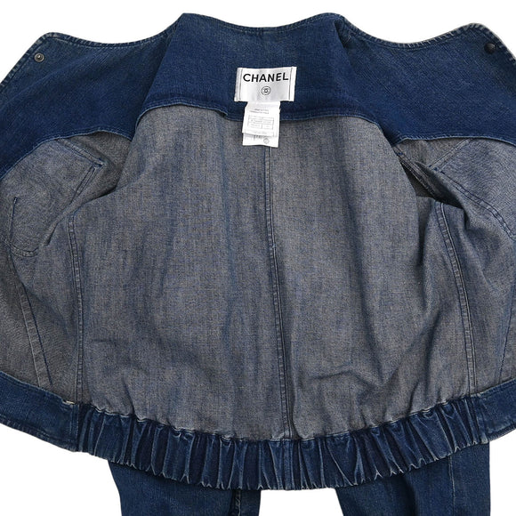 Chanel 2006 Collarless Denim Jacket Indigo #36
