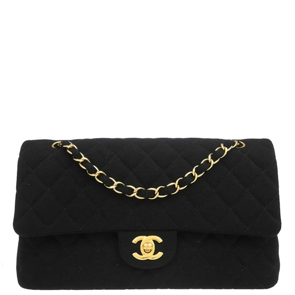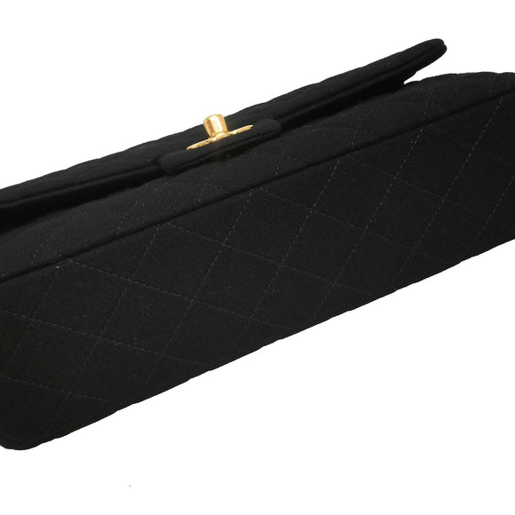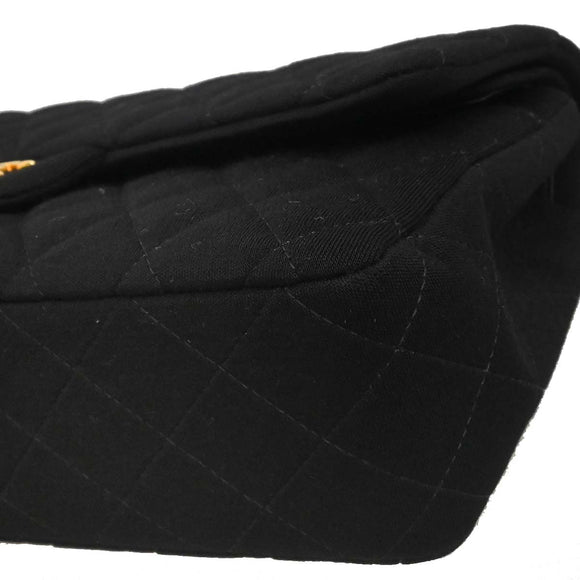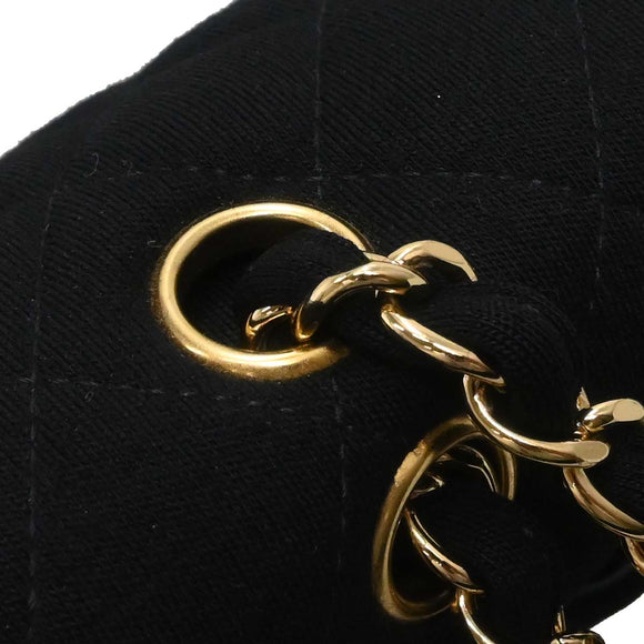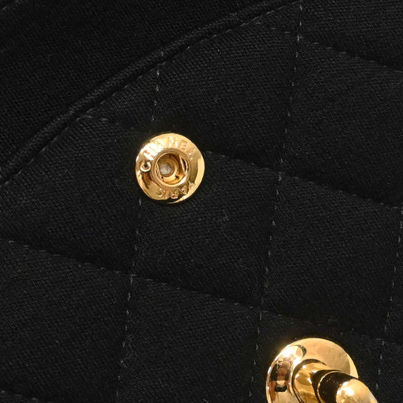 Chanel Black Cotton Medium Classic Double Flap Shoulder Bag