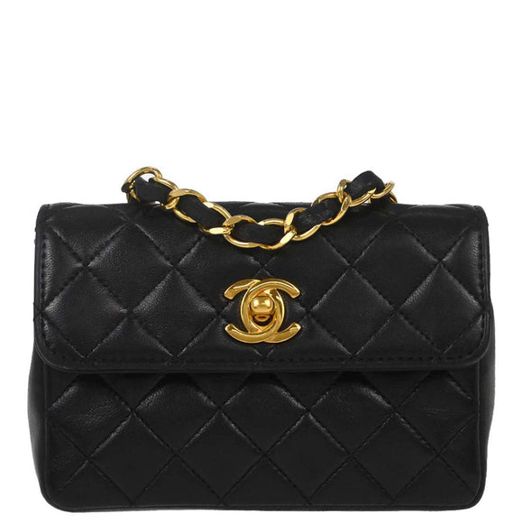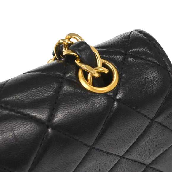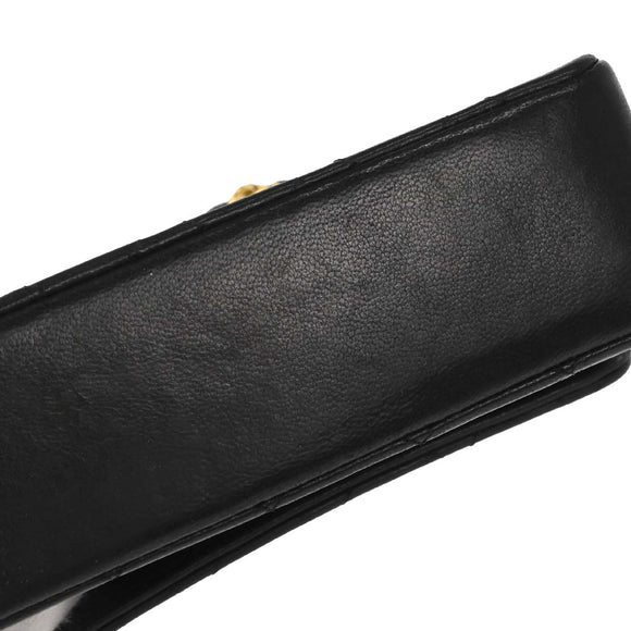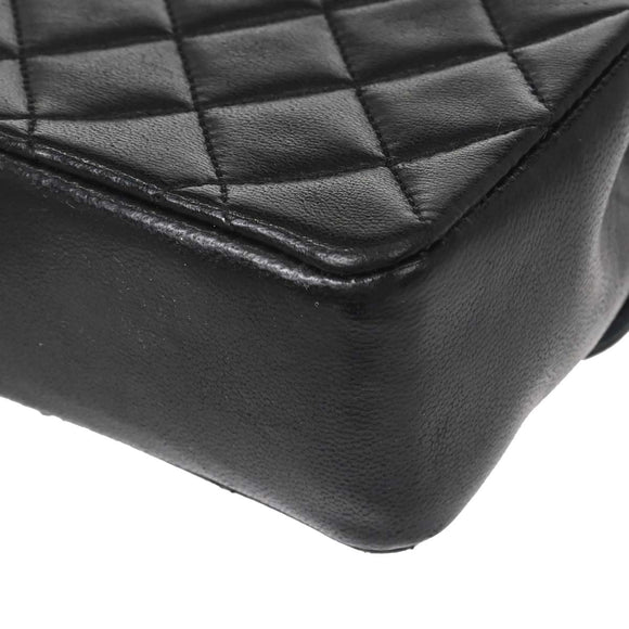 Chanel 1989-1991 Black Lambskin Straight Flap Shoulder Bag