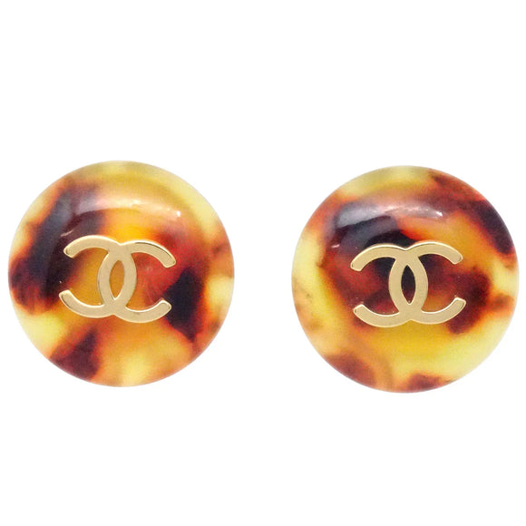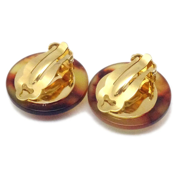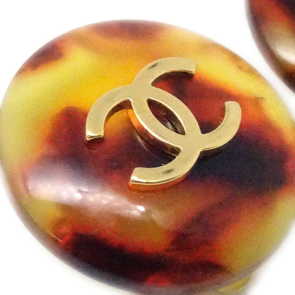 Chanel Button Earrings Clip-On Brown 97P