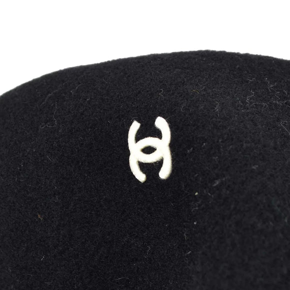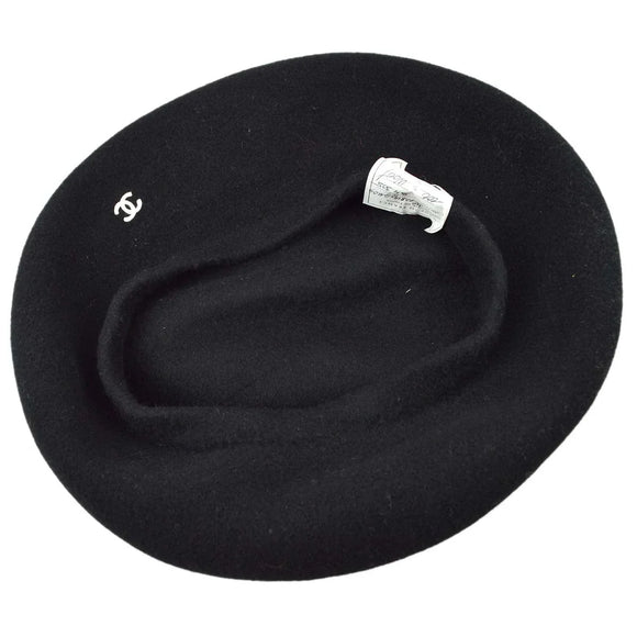 Chanel Oversize Black Hat Beret 98P #57 Small Good
