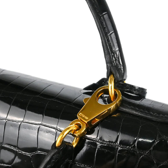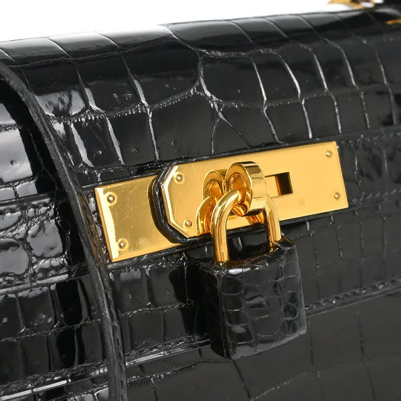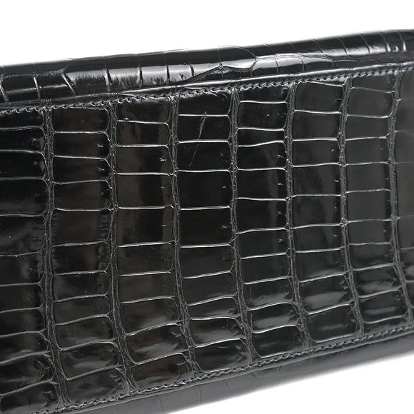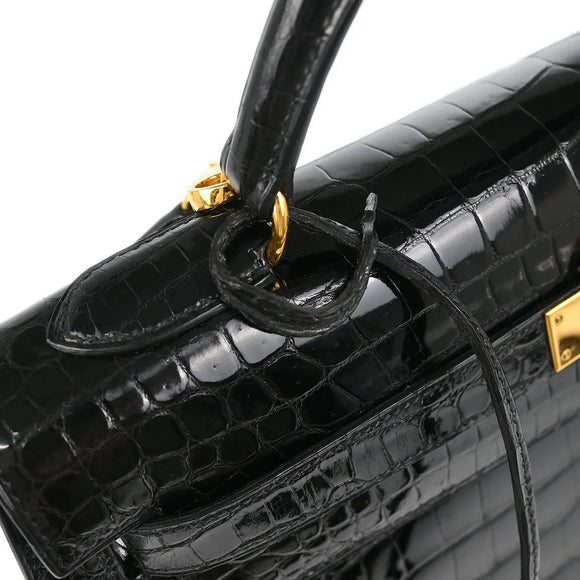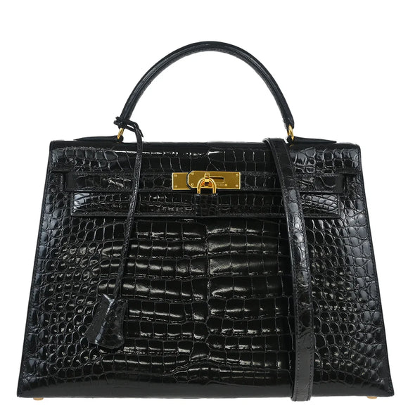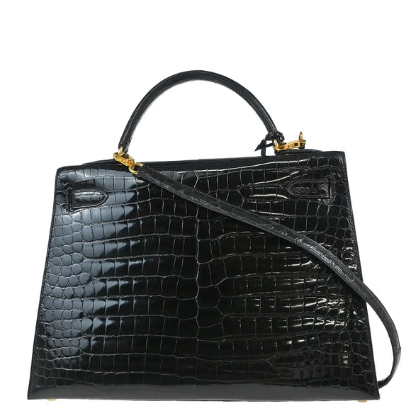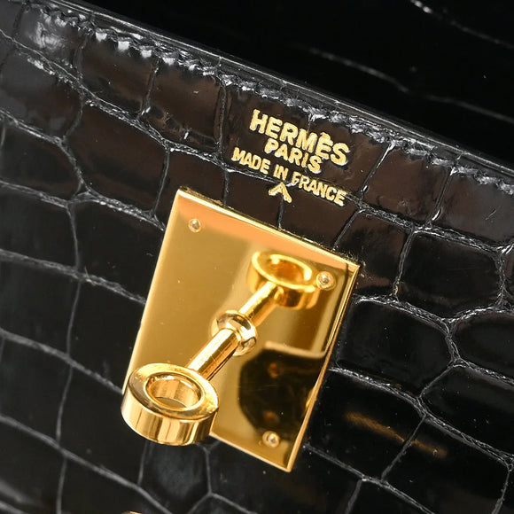 Hermes * 1993 Black Porosus Crocodile Kelly 32 Sellier Handbag