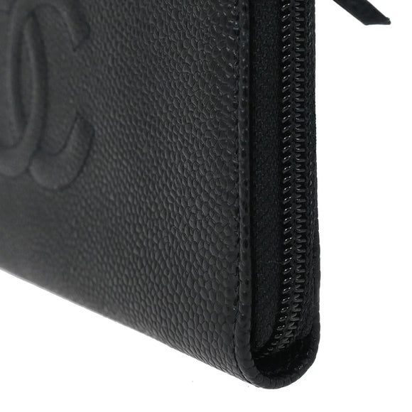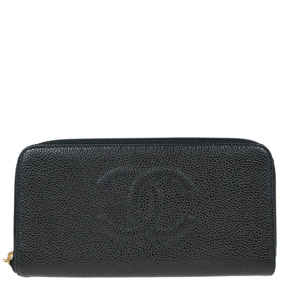 Chanel 2003-2004 Black Caviar Long Wallet Purse