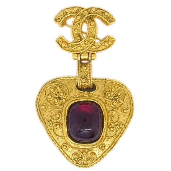 Chanel Gripoix Brooch Pin Gold Red 94A