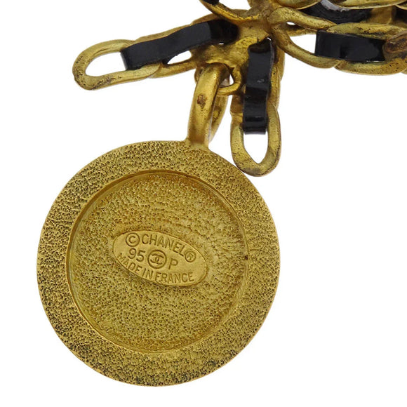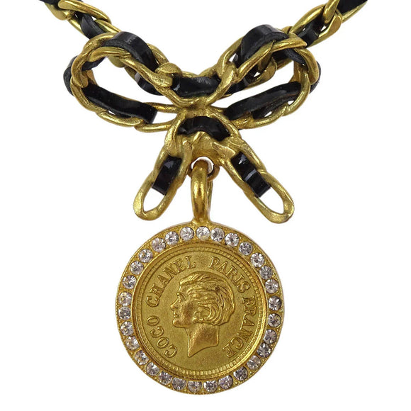 Chanel Gold Black Bow Medallion Rhinestone Choker Necklace 95P