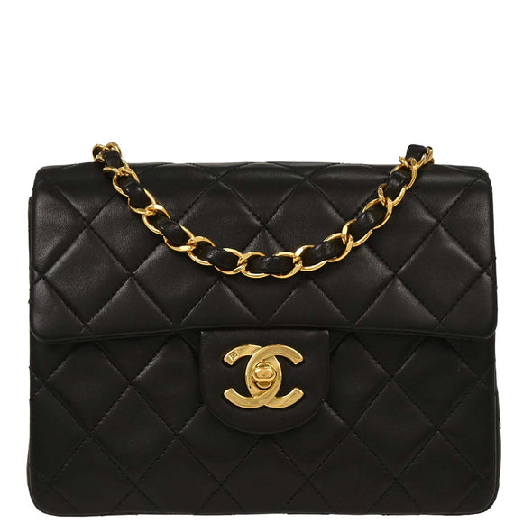 Chanel Black Lambskin Mini Classic Square Flap Shoulder Bag