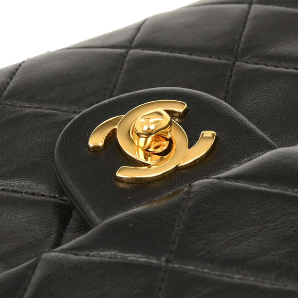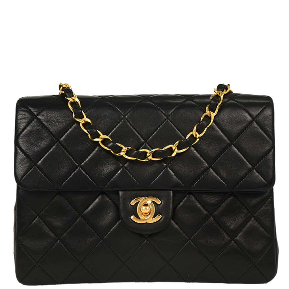 Chanel Black Lambskin Classic Square Flap Shoulder Bag