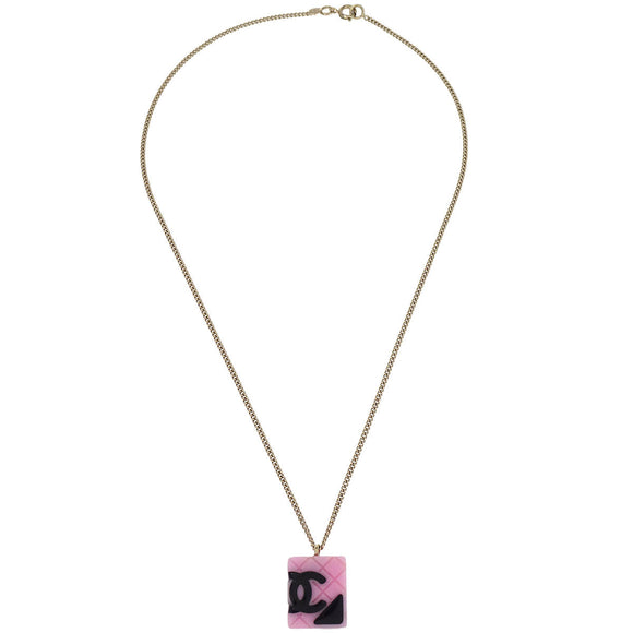 Chanel Cambon Ligne Chain Necklace Pendant Gold Pink 05C