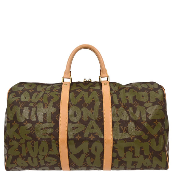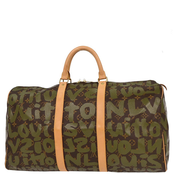 Louis Vuitton Khaki Monogram Graffiti Keepall 50 Duffle Bag M92196