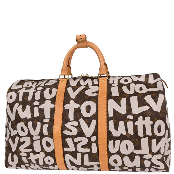 Louis Vuitton White Monogram Graffiti Keepall 50 Duffle Bag M92197