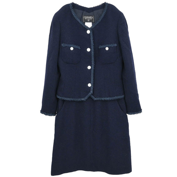Chanel Setup Suit Jacket Skirt Navy #42
