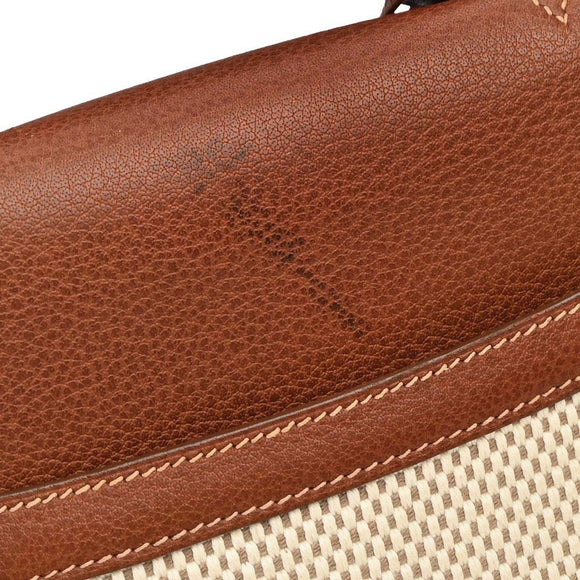 Hermes Beige Brown Toile GM Buffalo Sac a Depeches DPLG 2way Shoulder Handbag