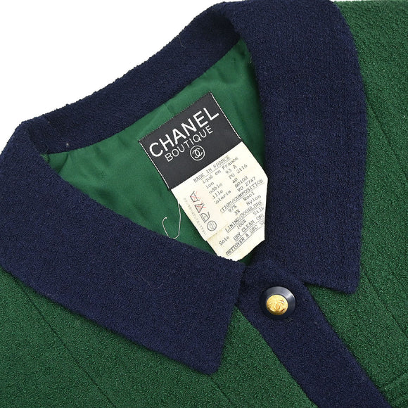 Chanel 1993 Setup Suit Jacket Skirt Green Navy #40