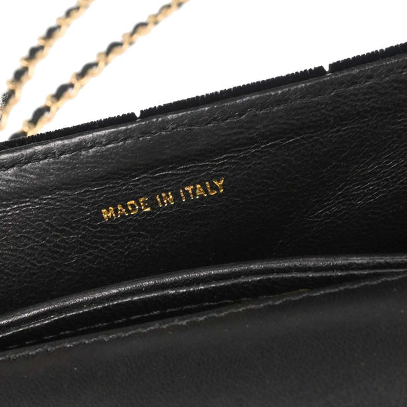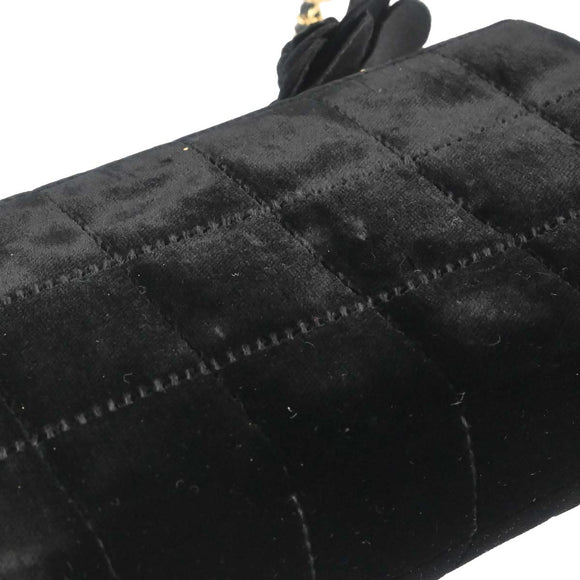 Chanel Black Velvet Camellia Choco Bar Shoulder Bag