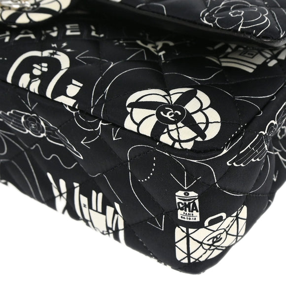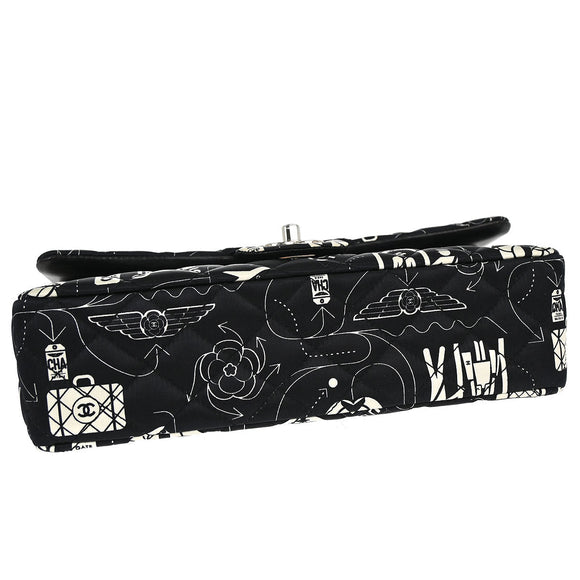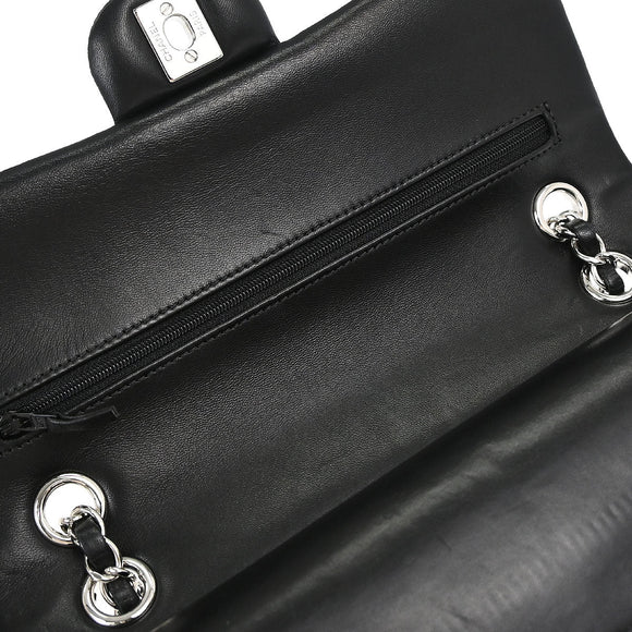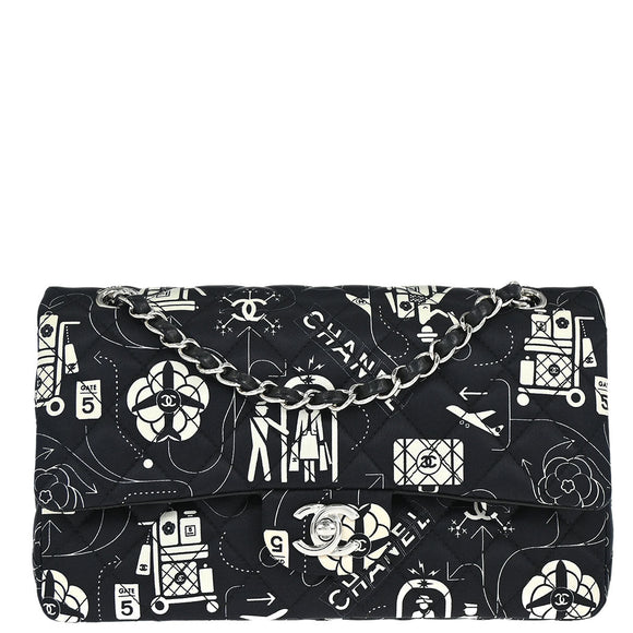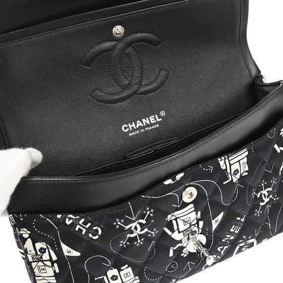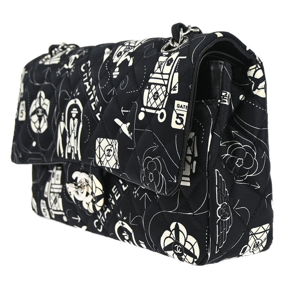 Chanel Black Satin Airline Medium Classic Double Flap Shoulder Bag