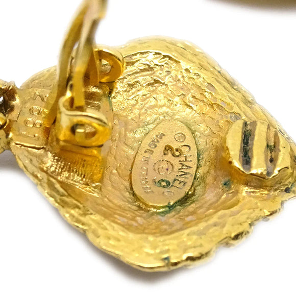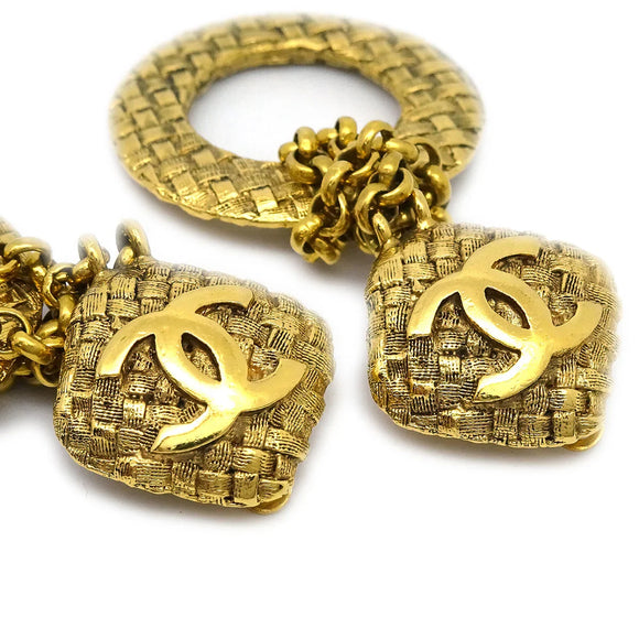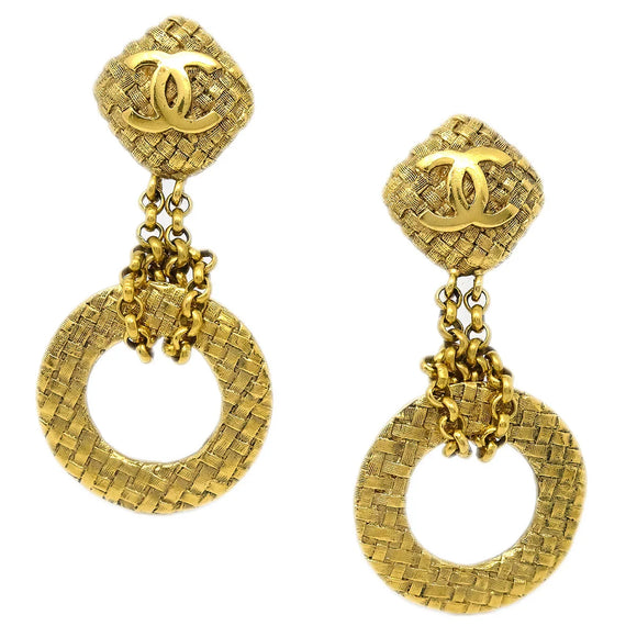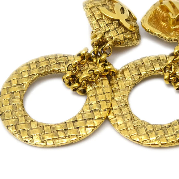 Chanel 1994 Dangle Hoop Woven CC Earrings Clip-On Gold 2881