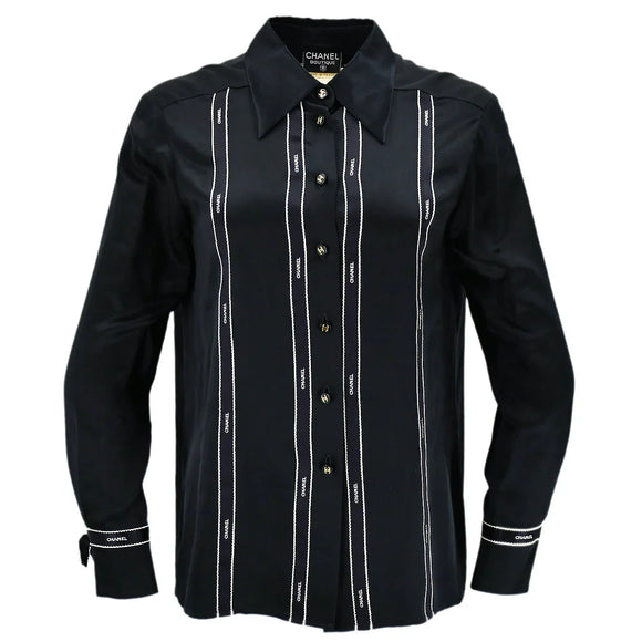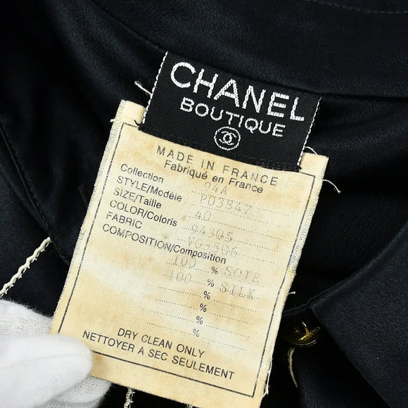 Chanel Ribbon Blouse Shirt Black 94A #40