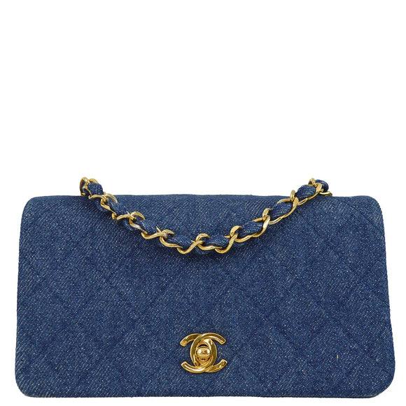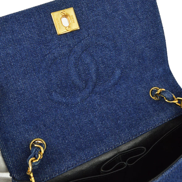 Chanel * 1989-1991 Denim Turnlock Mini Full Flap Bag