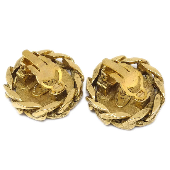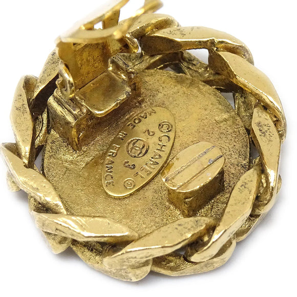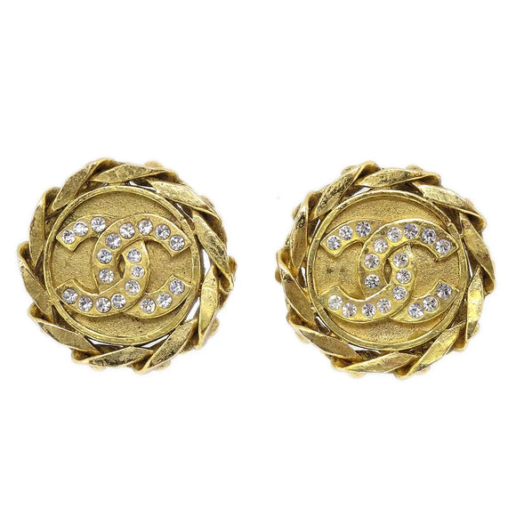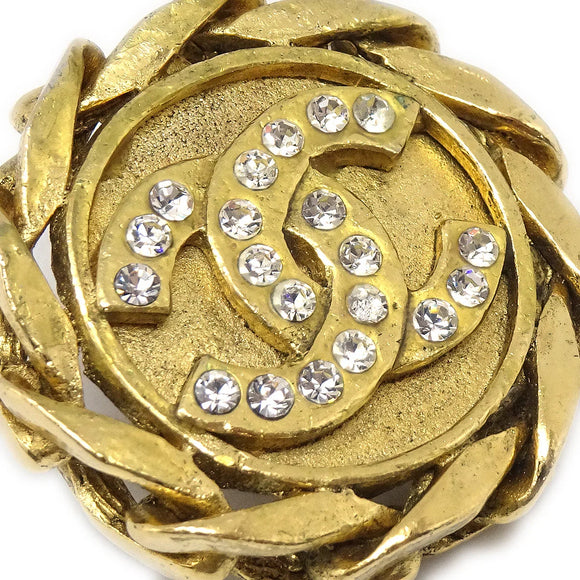 Chanel Button Earrings Gold Rhinestone Clip-On 23