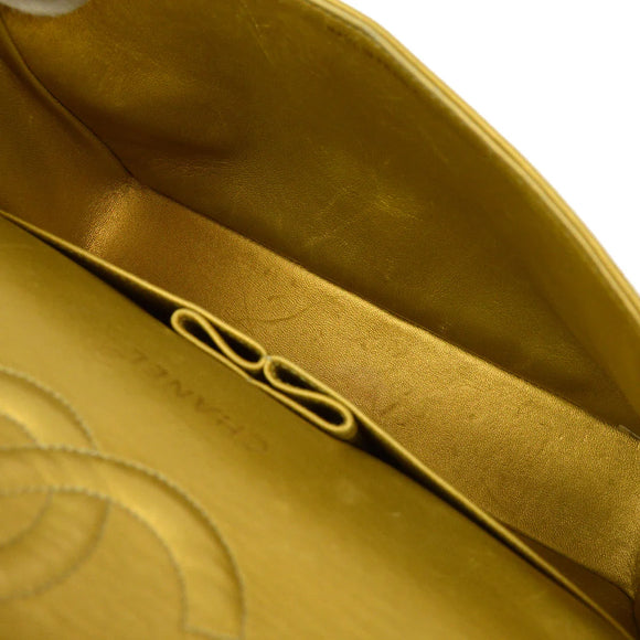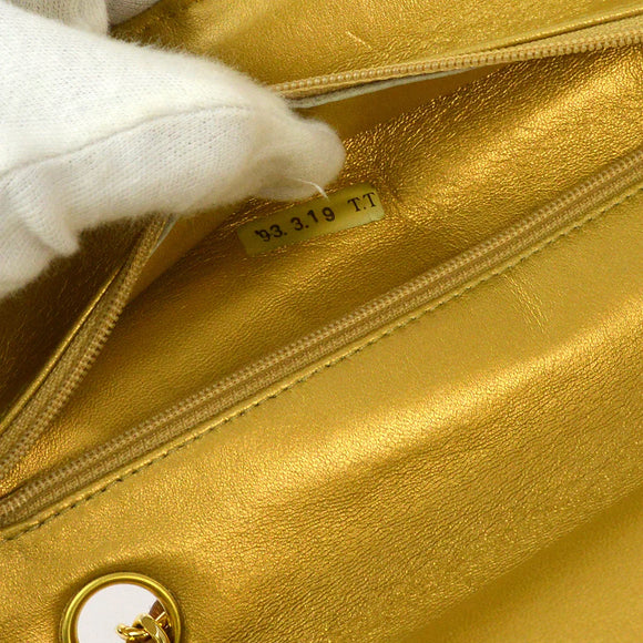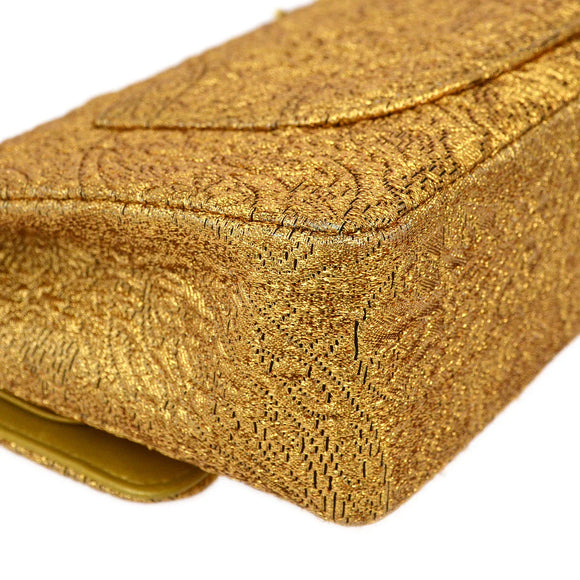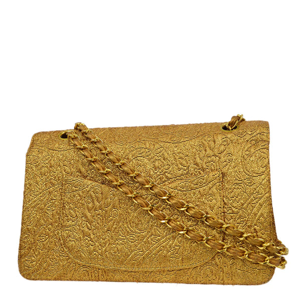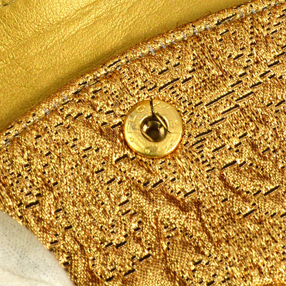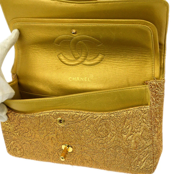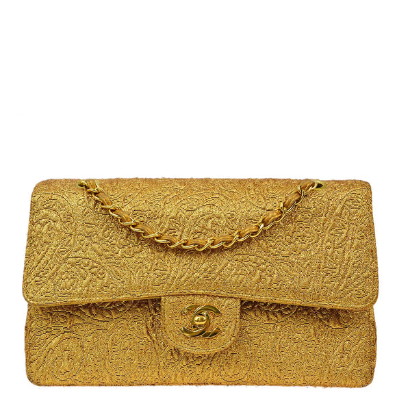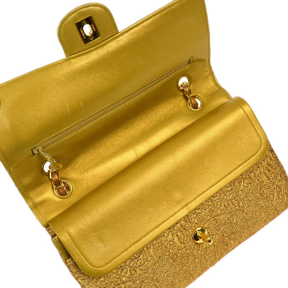 Chanel * 1991-1994 Gold Nylon Knit Medium Classic Double Flap Shoulder Bag