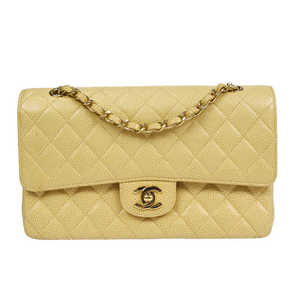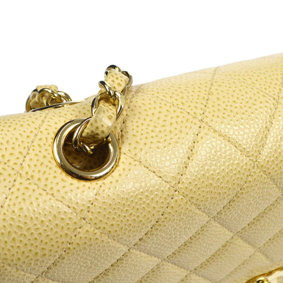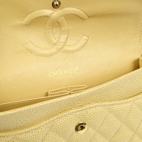 Chanel 2001-2003 Classic Double Flap Medium Beige Caviar