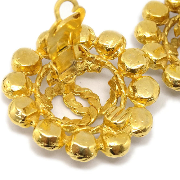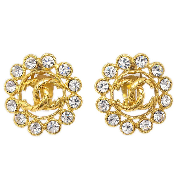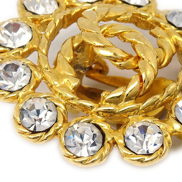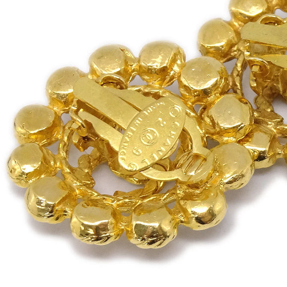 Chanel Button Rhinestone Earrings Clip-On 29 Gold