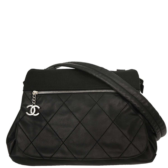 Chanel 2006-2008 Black Calfskin Canvas Shoulder Bag