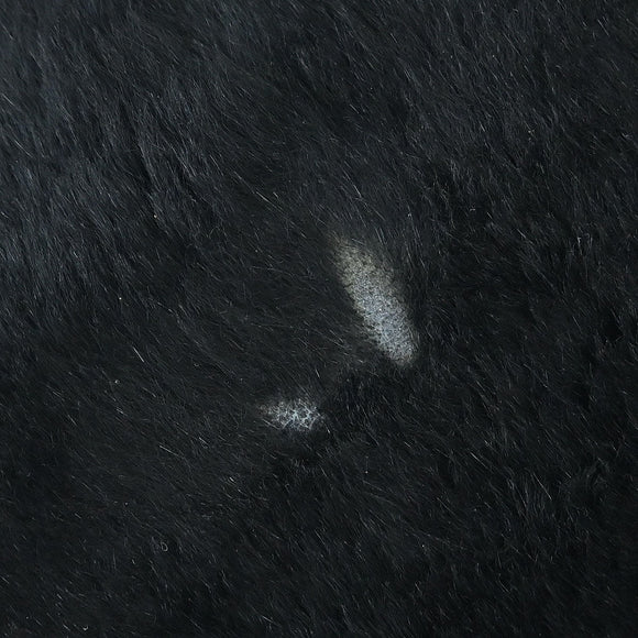There are areas where the hair has fallen out, leaving the skin exposed.